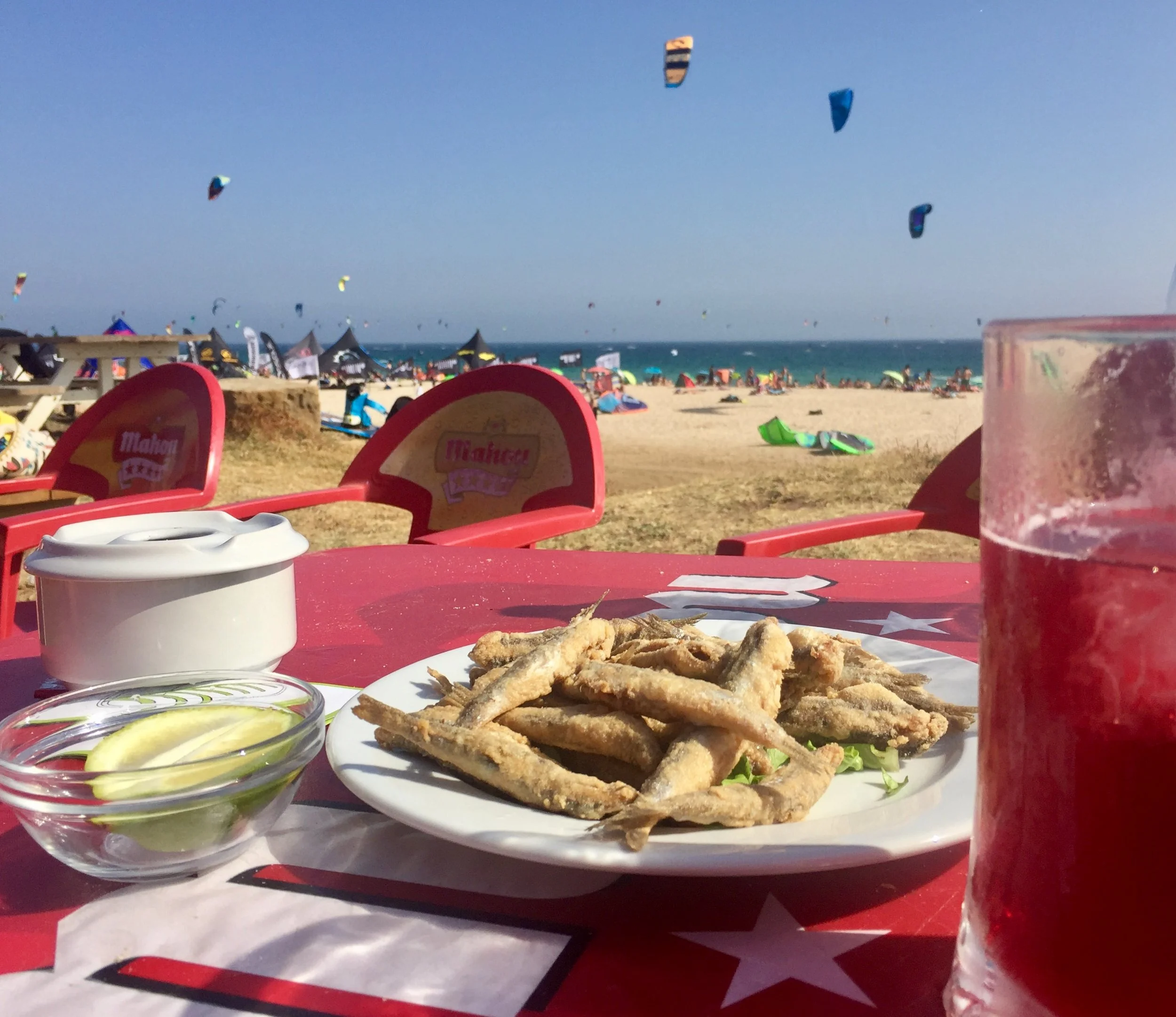 25) Munching boquarones and sipping tinto verano after a hard day's work at the beach learning the intricacies of kite-surfing