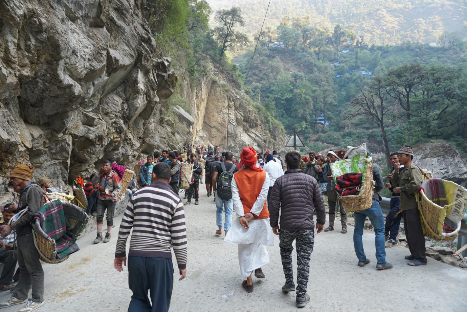 Local men loitered with large baskets strapped to their backs. Surveying the scene, a guess at what would go in those baskets was immediately validated. Those unable — or unwilling — to make the climb on their own legs could pay these men just a few thousand rupees (~$30) to bear them along the steep, rocky, eighteen kilometer route on their backs. There were many waiting to take on fares.